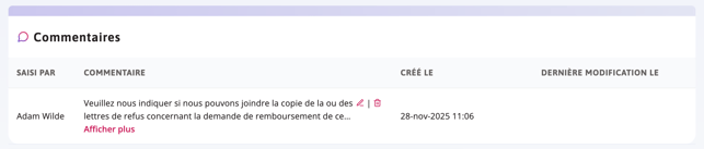 CONSEIL Ajoutez des commentaires clairs et concis à chaque étape afin d'assurer la visibilité de l'avancement du formulaire et de conserver un historique précis et vérifiable du flux de travail dans Auxita.