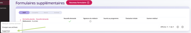 Comment supprimer ou archiver une demande de formulaire supplémentaire