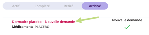 NOTE Une fois le formulaire archivé, il est toujours possible de vérifier que cette action a été effectuée en consultant la section Activité du profil du patient.