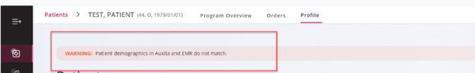 TIP Any changes to a patient's demographics can be made in EPIC and will update Auxita. If you attempt to edit them in Auxita, you will receive the following error message: