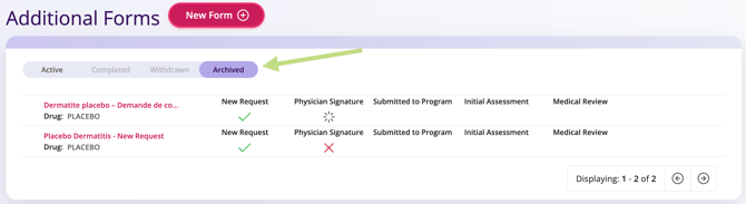 TIP Even after archiving, the form remains accessible for review by clicking the pink form name.