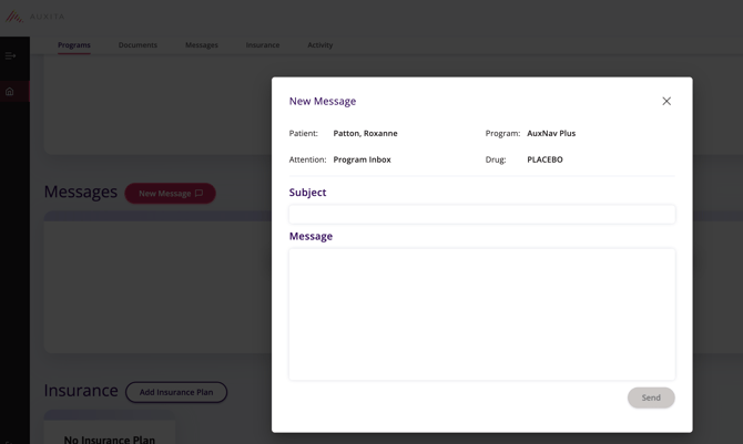 Secure Messaging is only available for participating Patient Support Programs. All messages go to the Patient Support Program team. Messages are not sent to physicians.