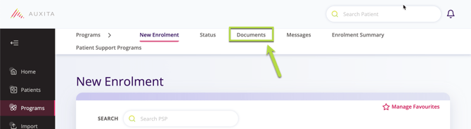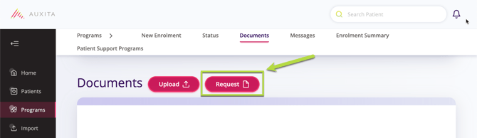 The patient must already be enrolled in a Patient Support Program before you can upload any documents to their profile. Not all PSPs support Document Requests/Uploads through Auxita.