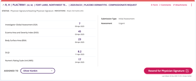 The colour at the top of the summary card indicates red if an urgent review is required or grey if a standard review is required.