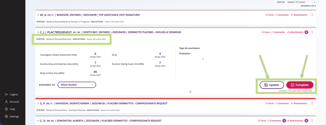 • Complete lets you choose your decision and finish the request.